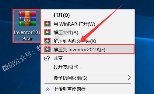 1.选中【Inventor2019】压缩包,鼠标右击选择【解压到Inventor2019】。