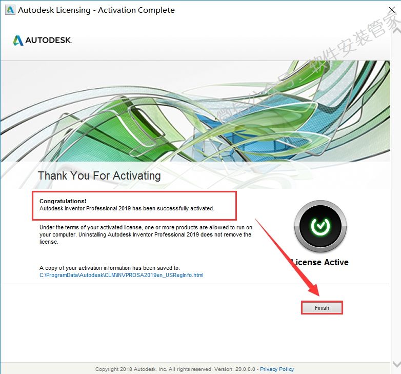22.激活成功,点击【Finish】。