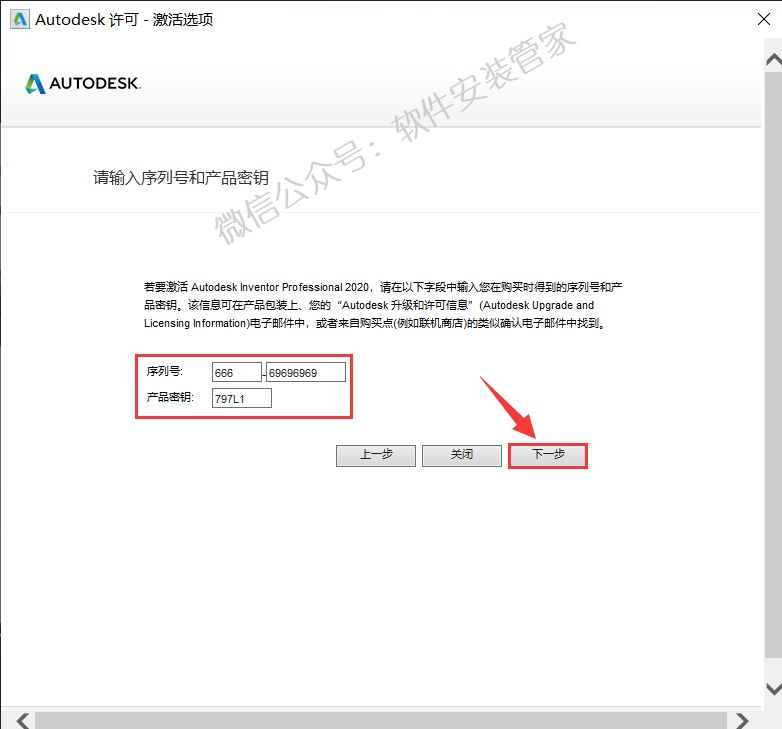 17.再次输入序列号:666-69696969,产品密钥:797L1,然后点击【下一步】。