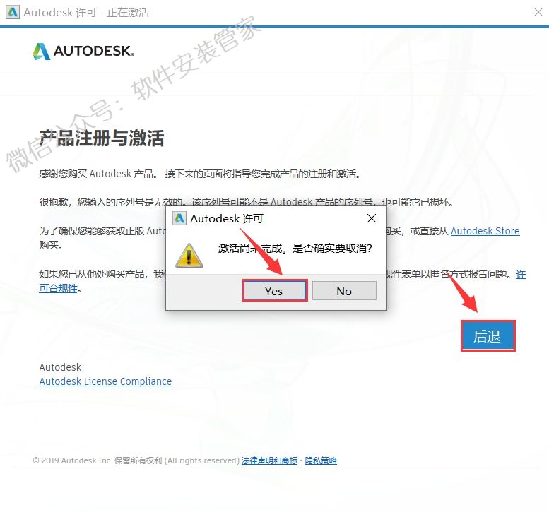15.点击【后退】,然后在弹出来的窗口中点击【Yes】。
