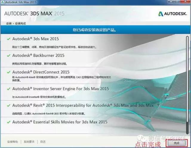 7、里MAX2015 64位中/英文版就安装完成,点击安装完成