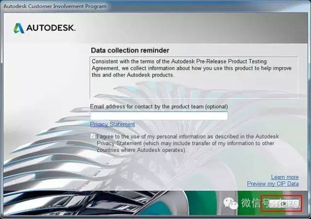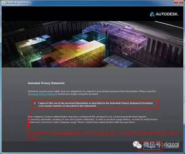 9、勾选“我同意使用在autodesk隐私声明中所描述的个人信息”,然后点击我同意(I Agree)