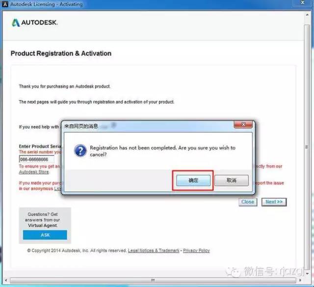 13、当注册尚未完成, 我们选择"确定"之后返回到3dsmax2015 64位中/英文版激活界面 ,重新点击激活,点击Activate