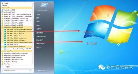 15、打开开始菜单,可以选择中文与英文的软件界面。
