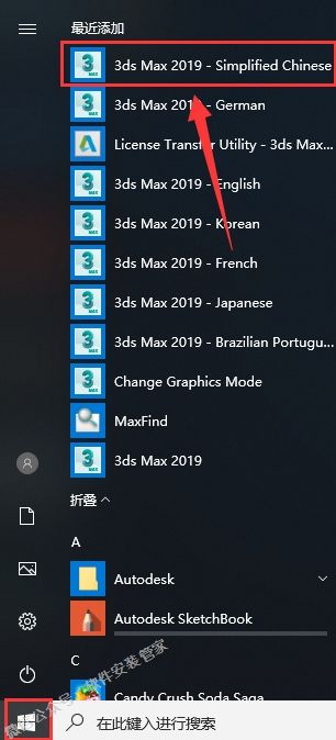 11.在开始菜单栏中找到并打开【3ds Max 2019-Simplified Chinese】。