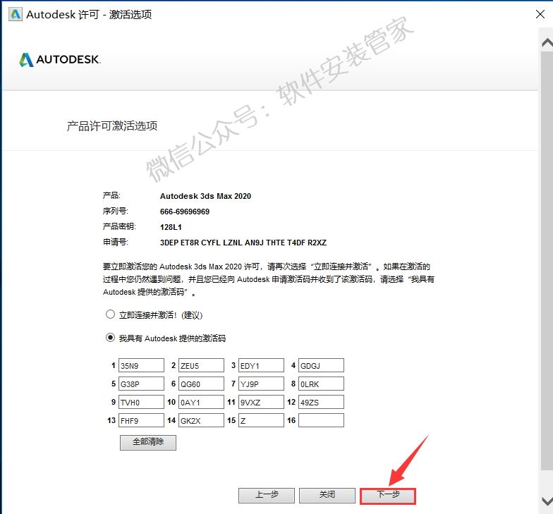 16.序列号输入【666-69696969】,产品密钥输入【128L1】,然后点击【下一步】。