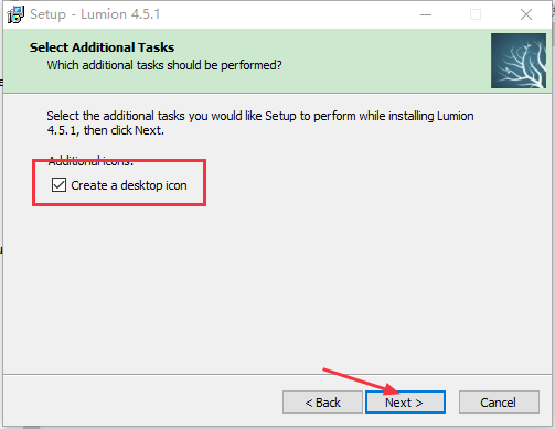 5.选中复选框(在桌面创建快捷方式),点击Next