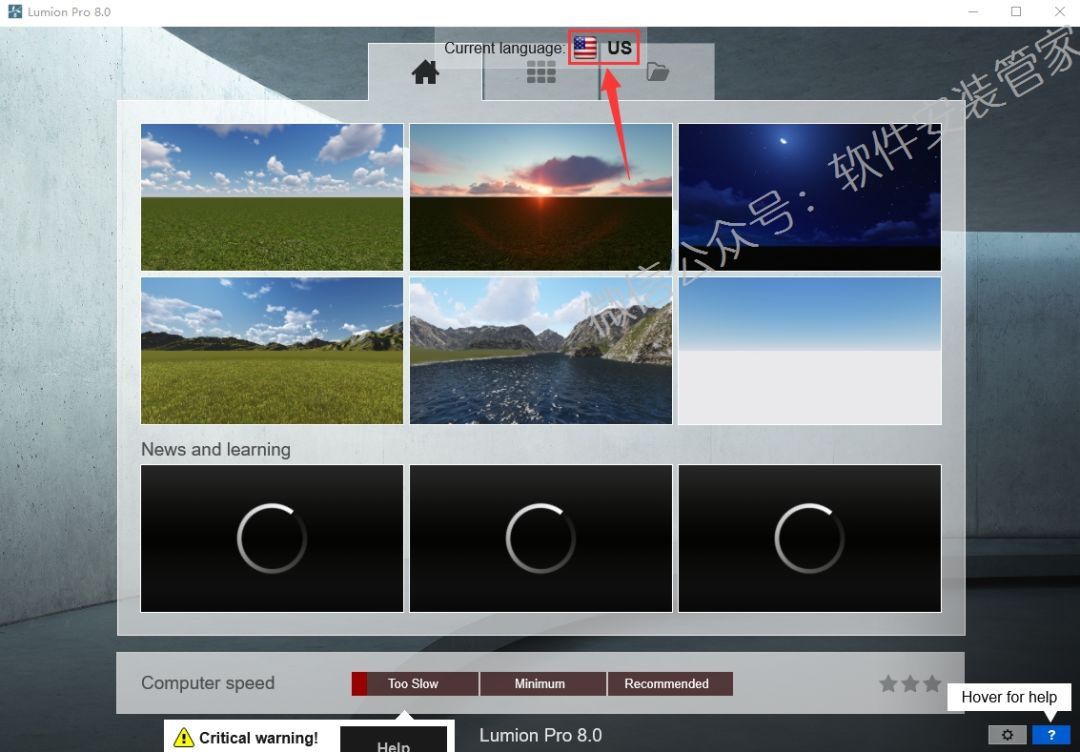 12.打开软件后,点击界面上方的【US】更改软件语言。