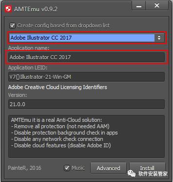 15.选中后点击注册机右下角的Install,然后会跳出文件资源管理器让你找一个dll文件。如果是默认路径就打开C:\Program Files\Adobe\Adobe Illustrator CC 2018\Support Files\Contents\Windows,找到后选择软件根目录下的amtlib.dll ,双击打开。