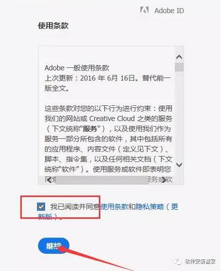 5、勾选使用条款,点击继续。
