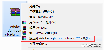 1.右击软件压缩包选择解压到“Adobe Lightroom Classic CC 7.0”。
