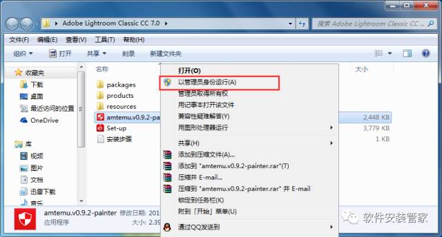 11. 接下来鼠标右击amtemu.v0.9.2-painter,选择以管理员的身份运行。