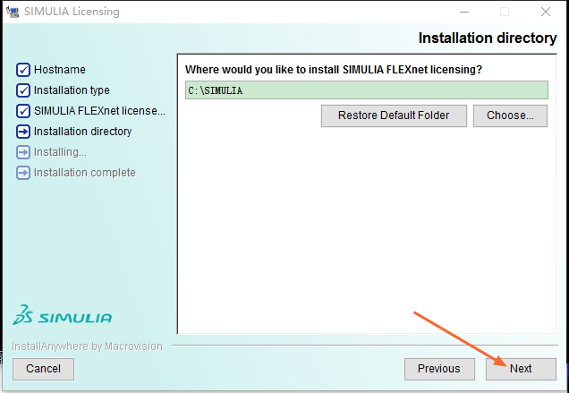 24.选择安装路径,默认为C:\SIMULIA\Abaqus(建议安装在除C盘以外的磁盘中,可在D盘新建一个文件夹D:\SIMULIA\Abaqus)点击Next