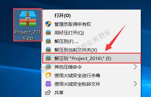 1.选中【Project_2016】压缩包,鼠标右击选择【解压到Project_2016】。