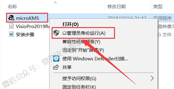 8.返回解压文件夹选中【microKMS】可执行文件,鼠标右击选择【以管理员身份运行】。