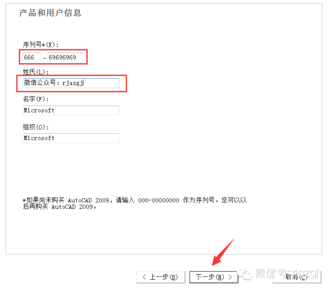 7.序列号输入:666-69696969,姓氏随便输入(我输入微信公众号:rjazgj)