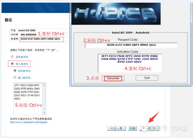13.把申请号复制到注册机里面,点击Generate后复制激活码, 然后选择输入激活码后,再按Ctrl+V
