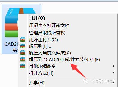 1.右击软件压缩包,选择解压到CAD2010软件安装包