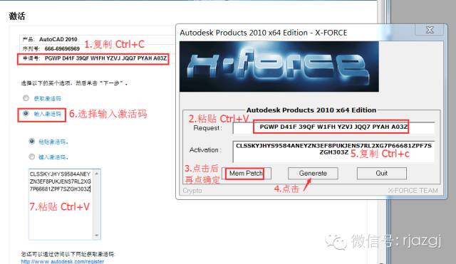 21.把申请号复制到注册机里面,先点击Mem Patch,再点击Generate后复制激活码, 然后选择输入激活码后,再按Ctrl+V