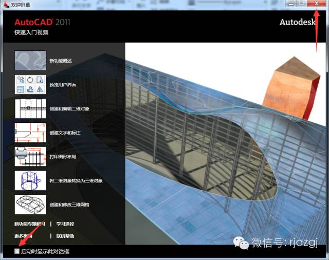 21.把启动时显示此对话框前面的勾去掉后,点击最右上方的关闭按钮。