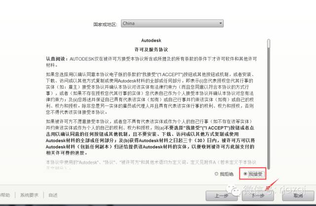 4.选择我接受,然后点击下一步。