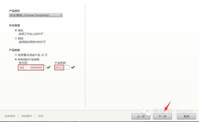 5.序列号输入:666-69696969,密钥输入:001G1