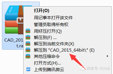 1.右击软件压缩包,选择解压到CAD2015。