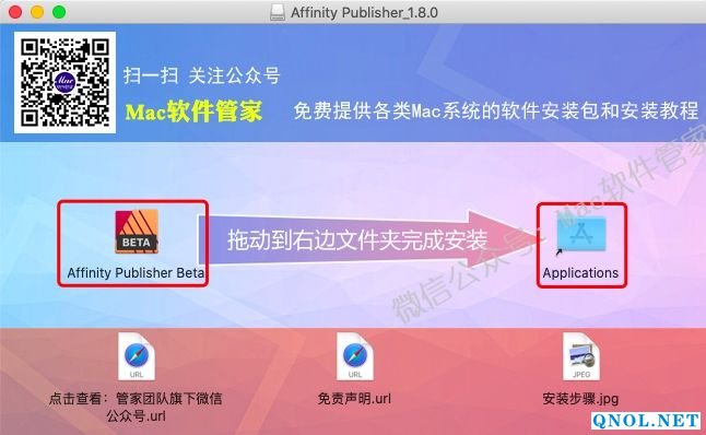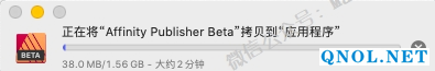 3.将【Affinity Publisher Beta】往【Applications】里面拖动即可安装。