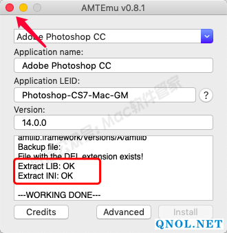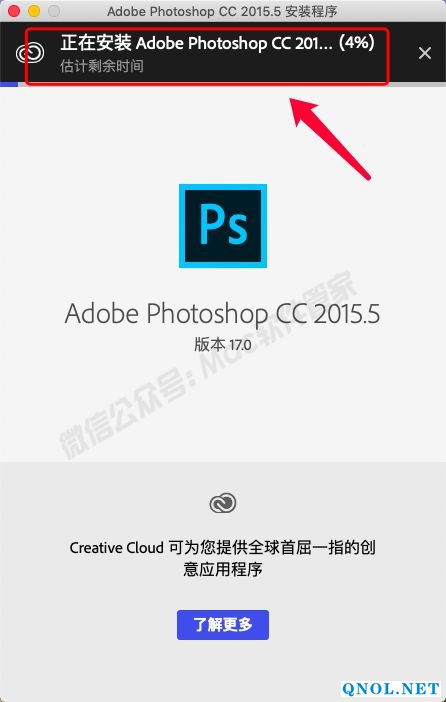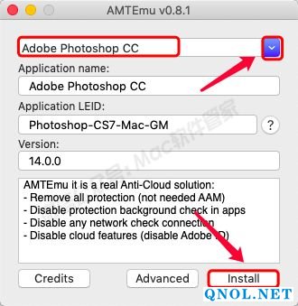 10.点击下拉菜单选择【Adobe Photoshop CC】然后点击【Install】。