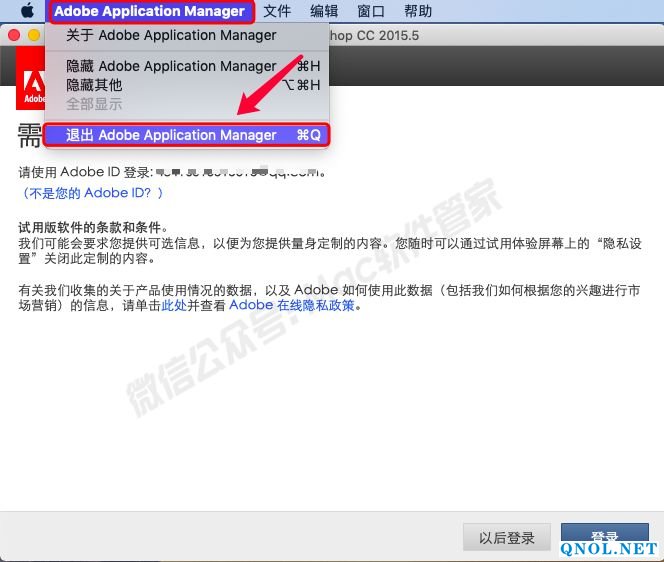 7.点击【Adobe Application Manager】,然后点击【退出Adobe Application Manager】。