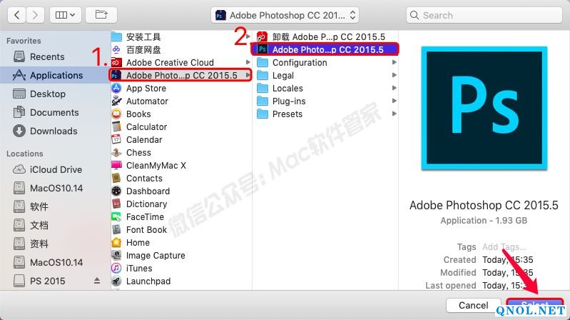 11.在弹出的【Applications】文件夹里面选择【Adobe Photoshop CC 2015.5】然后点击【Select】。
