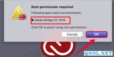 温馨提示:若你同时安装了多个Adobe系列软件,点击【PATCH OR DRAG】后会弹出多个“WARNING”提示,只有当下图红色框中显示的软件名称和版本是你当前安装的软件时点击【OK】,否则一律点击【Cancel】(如果不点击“Cancel”会造成其它Adobe软件无法打开)。