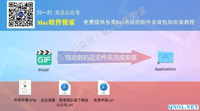 2.打开解压后的文件夹,将「PicGIF」拖到「Applications」文件夹里。