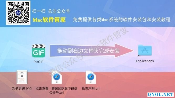 2.打开解压后的文件夹,将「PicGIF」拖到「Applications」文件夹里。