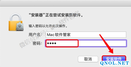 8.输入电脑密码,然后点击【安装软件】。