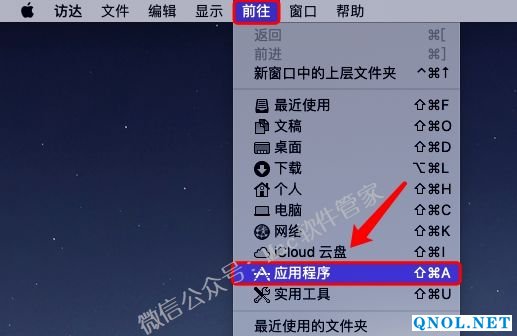10.点击【前往】选择【应用程序】。