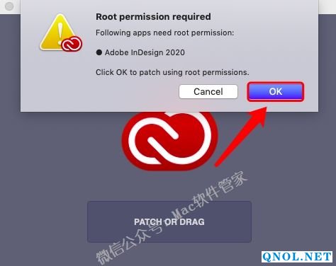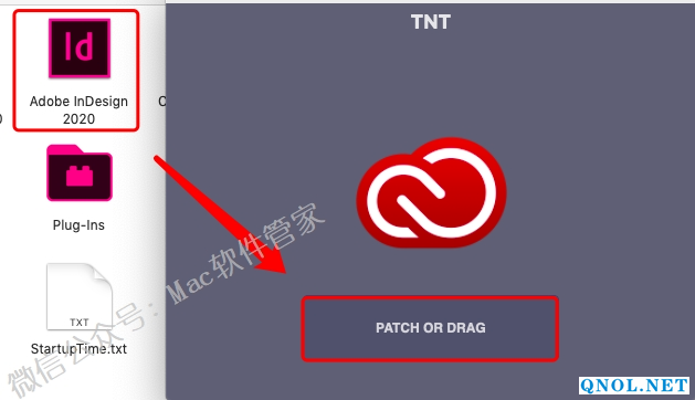 12.将【Adobe InDesign 2020】往【PATCH OR DRAG】上面拖动。