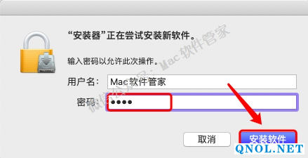 6.输入电脑密码,然后点击【安装软件】。