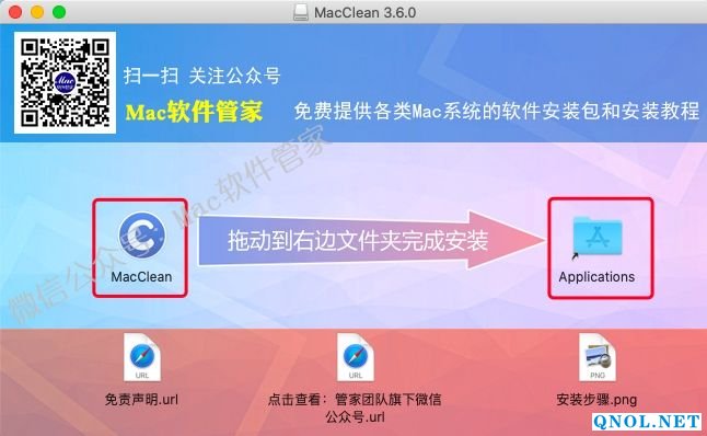 3.打开解压后的文件夹,将【MacClean】拖到【Applications】文件夹里。