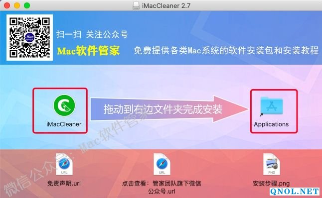 3.打开解压后的文件夹,将【iMacCleaner】拖到【Applications】文件夹里。