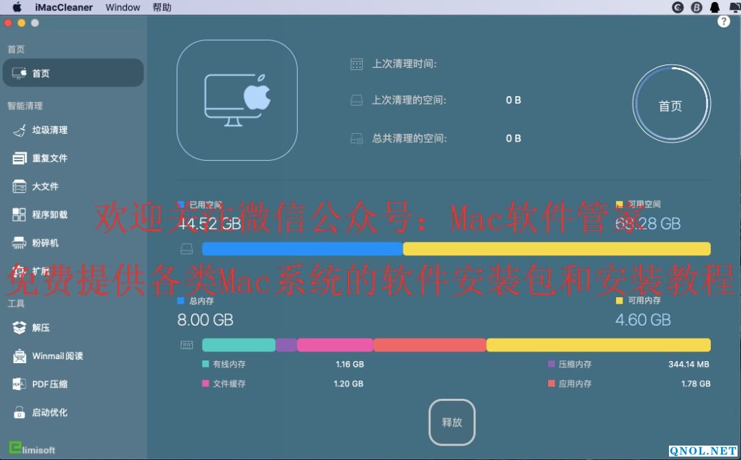 iMacCleaner可以安全地扫描和清理整个Mac系统,删除未使用的文件,重复文件,减小iPhoto图库的大小,卸载不必要的应用程序,粉碎文件,管理启动项,提取RAR存档,压缩PDF。