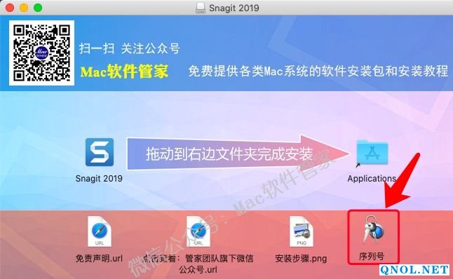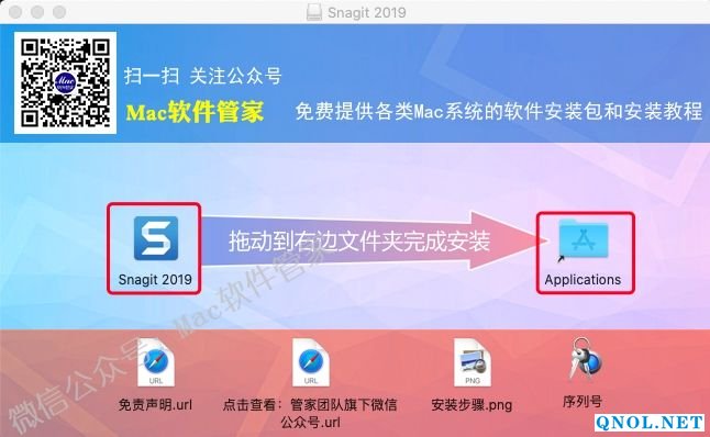 3.打开解压后的文件夹,将【Snagit 2019】拖到【Applications】文件夹里。