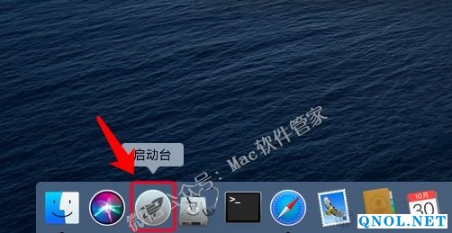 5.在程序坞中点击【启动台】。