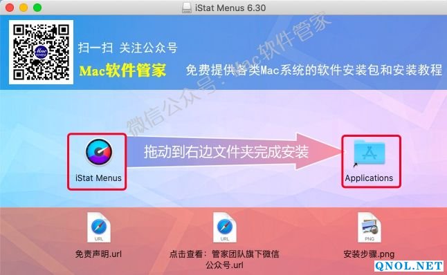 3.打开解压后的文件夹,将【iStat Menus】拖到【Applications】文件夹里。