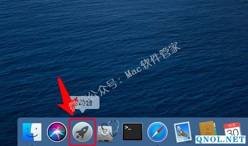 5.在程序坞中点击【启动台】。