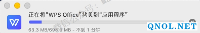 3.打开解压后的文件夹,将【WPS Office】往【Applications】文件夹中拖动。