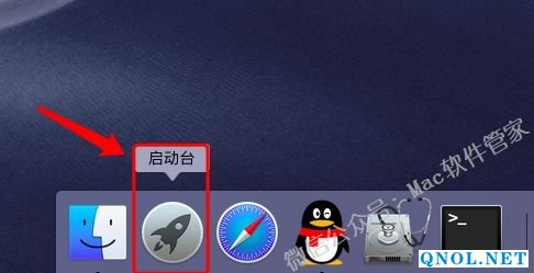 5.点击程序坞中的【启动台】。
