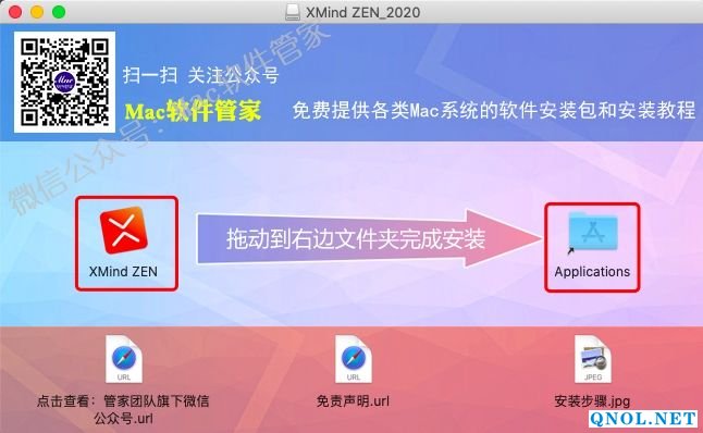 3.将【XMind ZEN】往【Applications】里面拖动即可安装。