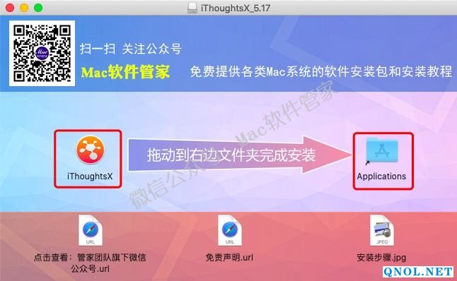 3.将【iThoughtsX】往【Applications】里面拖动即可安装。