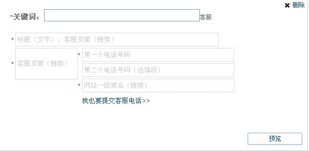 在这里可以输入你的公司或者网站名称,不过建议大家还是输入品牌名称,因为公司名称很多人记不住,但是品牌名称说一次就能记住了。我们就输入了“通王科技”,下面的客服页面里面输入你有在线客服的页面链接,下面也有说明,例如联系方式页面或者联系我们页面链接,形式一定是:http://www.xxxx.com/xxxx/或者http://www.xxxx.com/xxxx/xx.html ,如果没有在线客服的也很简单,直接登录53客服网站注册一个账号,让技术把代码放上去就可以了,客服页面一定要有客服,没有认证是不会通过的。